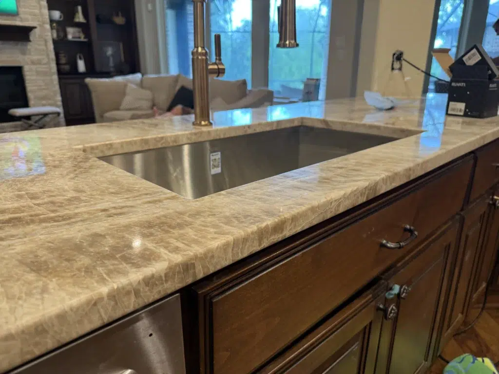 Once the countertops are in place, we’ll make any final adjustments to ensure everything is aligned and secure. For natural stone countertops, we apply a high-quality sealant to protect the surface from stains and spills.